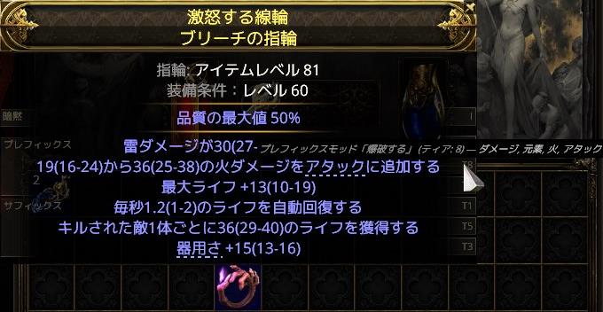 固定で「品質の最大値が50%である。」の暗黙MODを持つ指輪です。以下で説明するカタリストと組み合わせて使います。